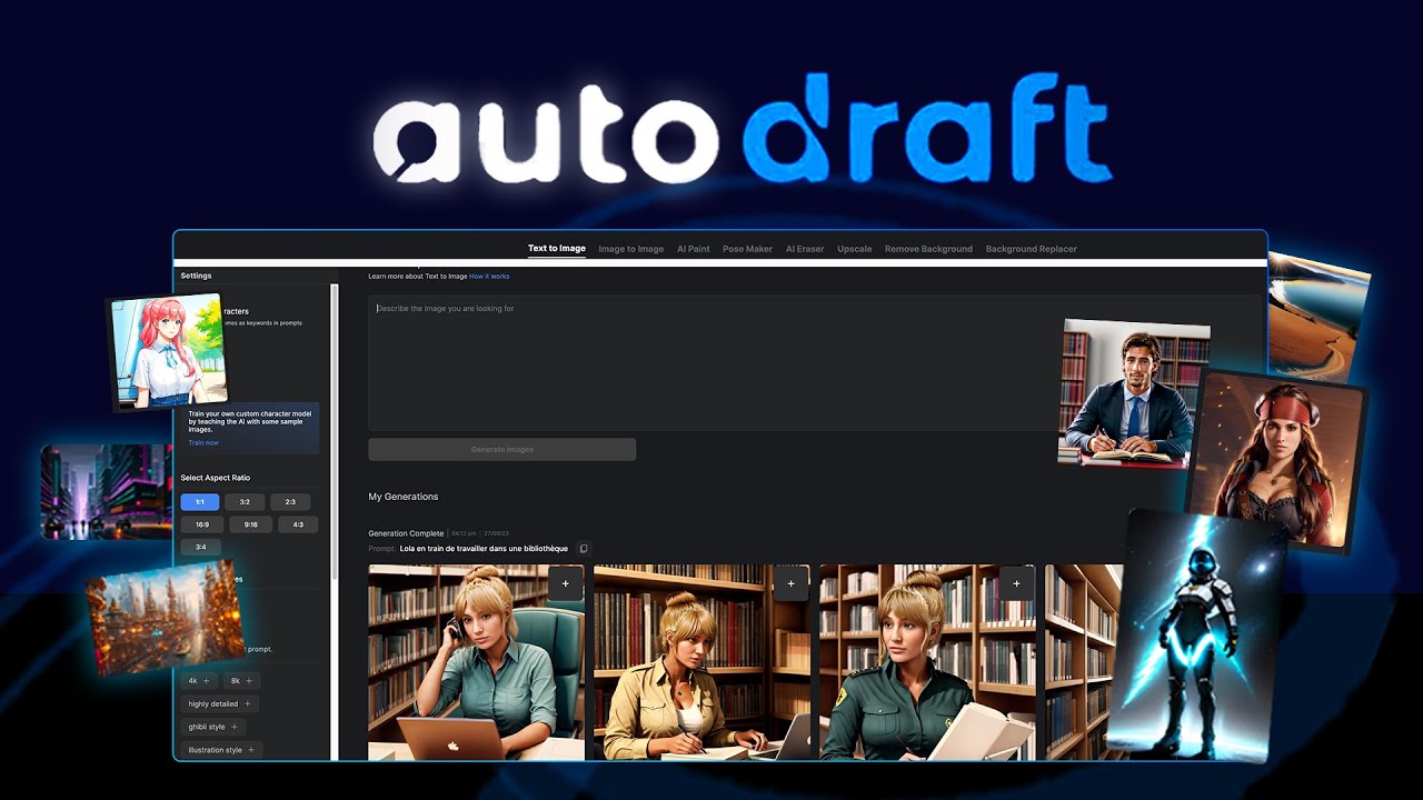 La génération d'images personnalisées avec Autodraft est simple et accessible à tous, que vous soyez un professionnel de la conception graphique ou un débutant curieux.