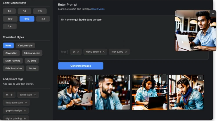 Notre outil de génération d'images utilise des algorithmes avancés qui vous permettent de personnaliser chaque détail.