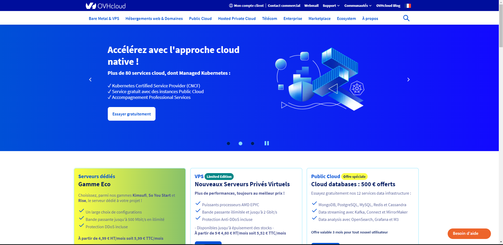 Rendez-vous sur le site web d'OVH en ouvrant votre navigateur et en tapant "www.ovh.com" dans la barre d'adresse.